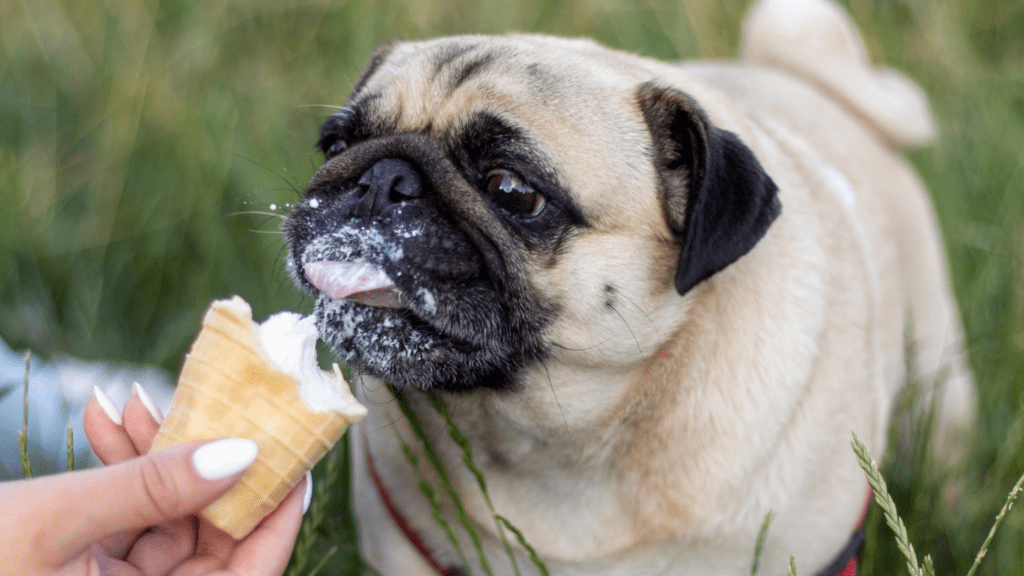 Ice cream contains high levels of sugar. Even “low-sugar” or “sugar-free” versions often use artificial sweeteners, some of which are extremely dangerous for dogs.